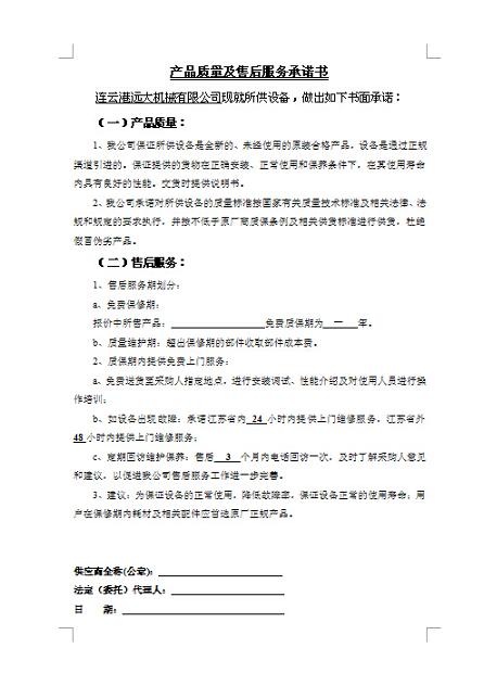 產(chǎn)品質(zhì)量及售后服務(wù)承諾書(shū)