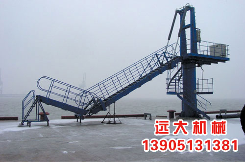 登船梯是現(xiàn)代各種大型碼頭在船舶停泊后,碼頭作業(yè)過程中,碼頭作業(yè)人員和船員安全順利上下船舶的專用設(shè)備。對于5萬噸級(jí)以上碼頭,油輪上自帶舷梯難以形成岸與船的安全通道,因此登船梯成了大型碼頭不可缺少的關(guān)鍵設(shè)備。