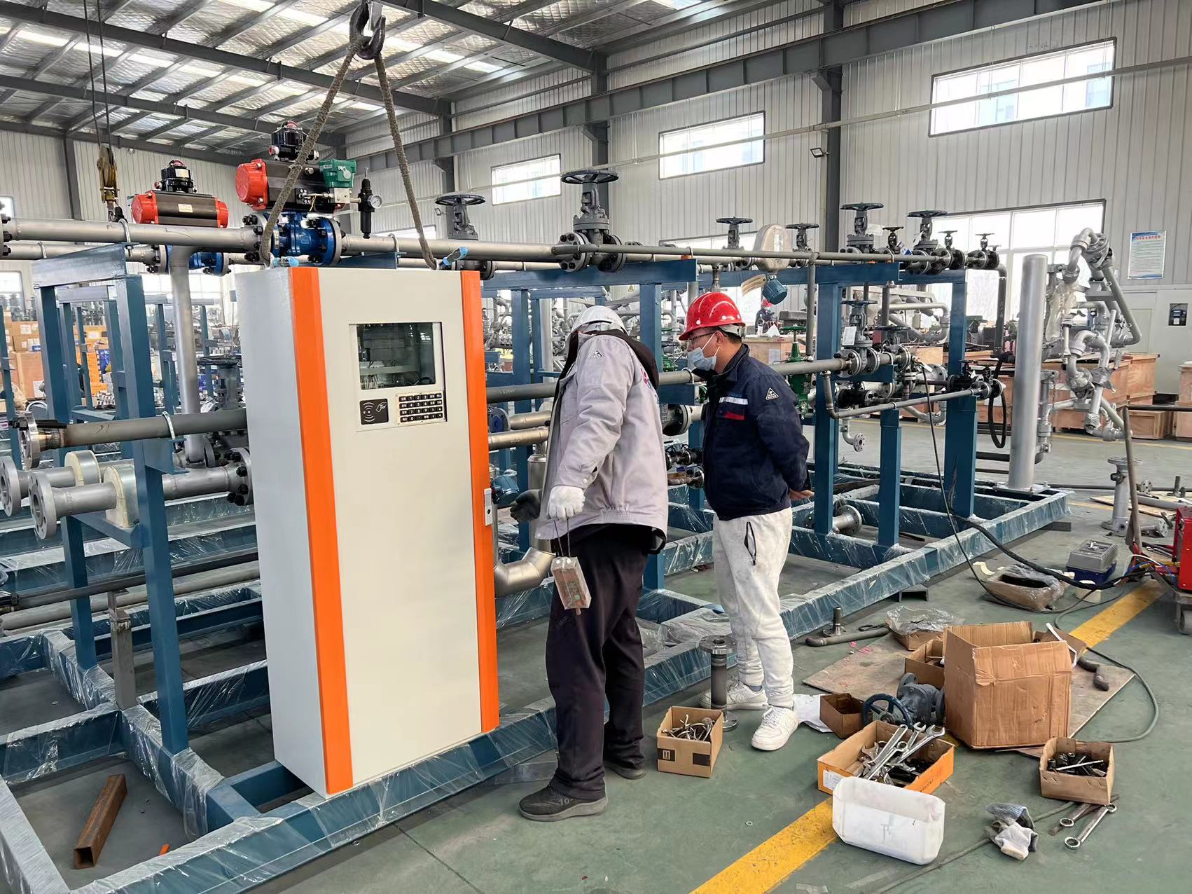 液化烴類介質(zhì)槽車裝車系統(tǒng)比油品槽車裝車系統(tǒng)復雜,現(xiàn)場組配裝車系統(tǒng),安裝和調(diào)試周期長,質(zhì)量不穩(wěn)定。為克服以上缺點,在工廠內(nèi),將裝車系統(tǒng)的儀表和設(shè)備集成在一個橇裝架上,并完成電氣安裝、強度試驗和低溫測試等,裝車橇到達用戶裝車現(xiàn)場后,接地角螺栓,連接工藝管線、通訊和供電線路就可以使用。結(jié)合液化烴類介質(zhì)裝車橇技術(shù)特點,對液化烴裝車系統(tǒng)中的設(shè)計數(shù)據(jù)、功能要求、操作方法進行敘述,綜合國內(nèi)裝車系統(tǒng)在使用中出現(xiàn)的問題提出了解決辦法。以下為公司近期液化烴類裝車撬的生產(chǎn)現(xiàn)場。